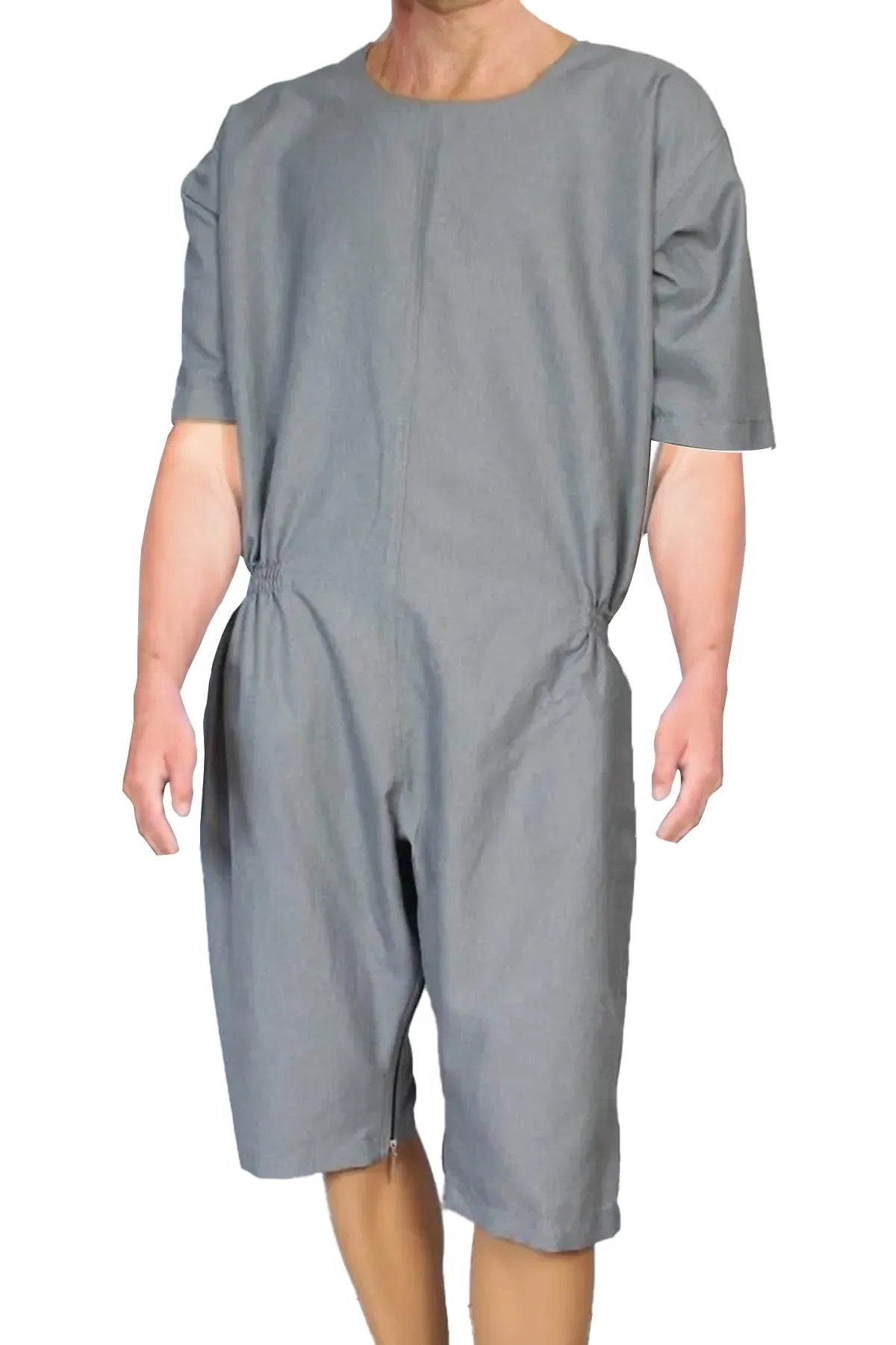 Comfortable and Practical Patient Jumpsuit for Elderly - Grey